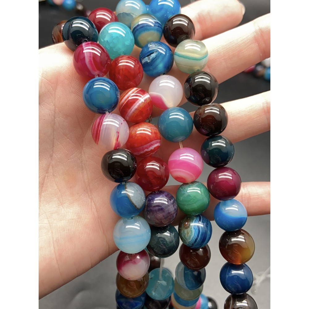 Каменные бусины, Агат, тонированный, тёмный микс цветов, шарик гладкий, 12 мм, длина нити 38 см