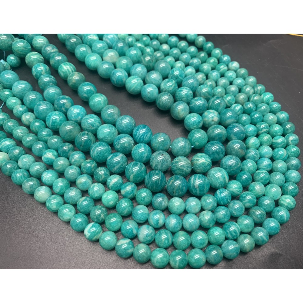 • Каменные бусины, Амазонит люкс, шарик гладкий, 10 мм, длина нити 38 см