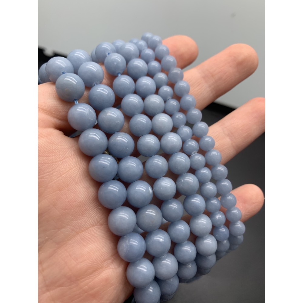 Теги: Каменные бусины, Ангелит, ангидрит природный, шарик гладкий, 8-8, 5 мм, длина нити 38 см, 12955, Бусины гладкие