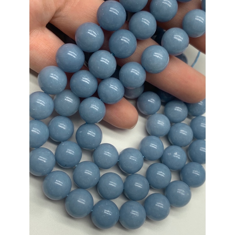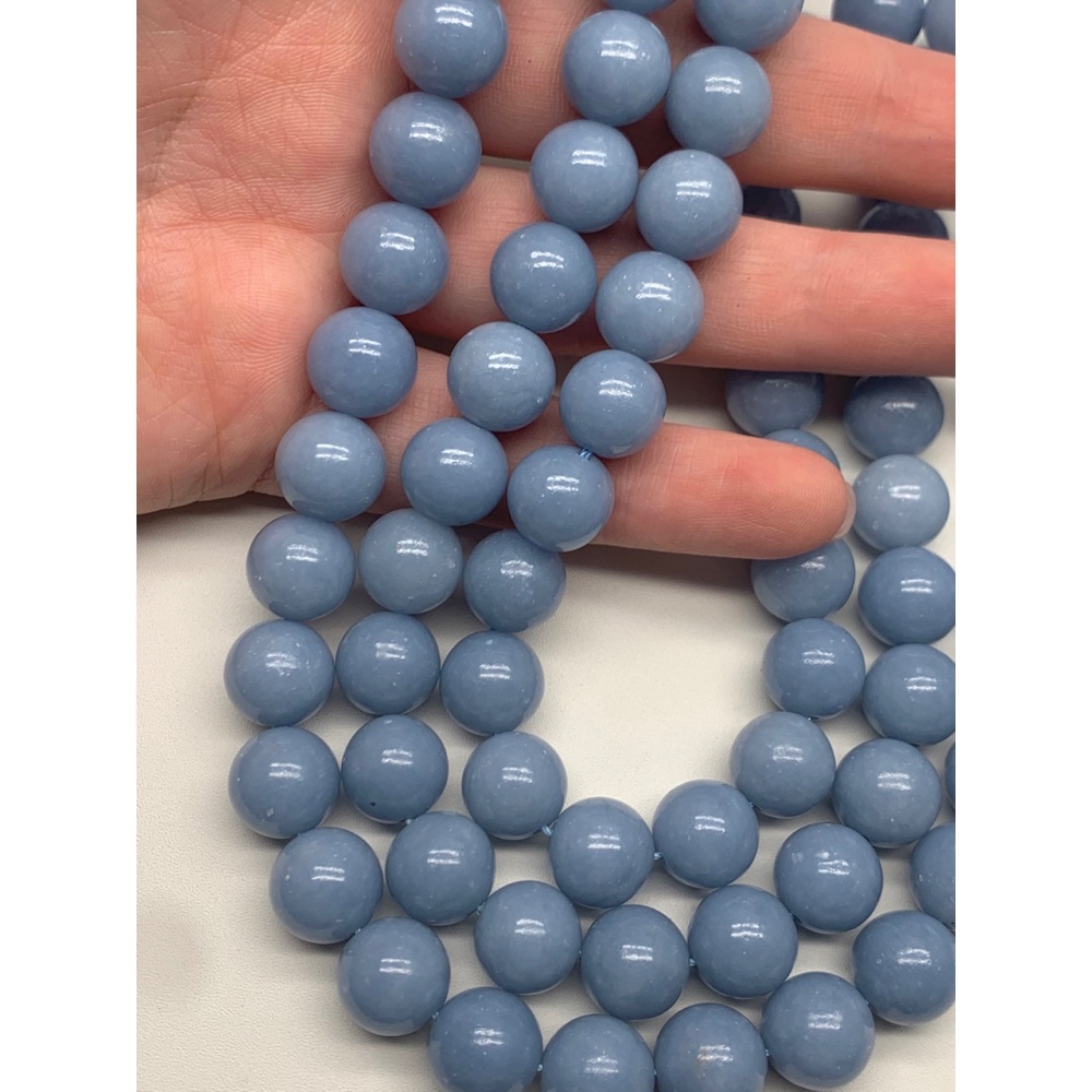 Каменные бусины, Ангелит, ангидрит природный, шарик гладкий, 12 мм, длина нити 38 см