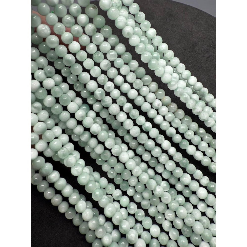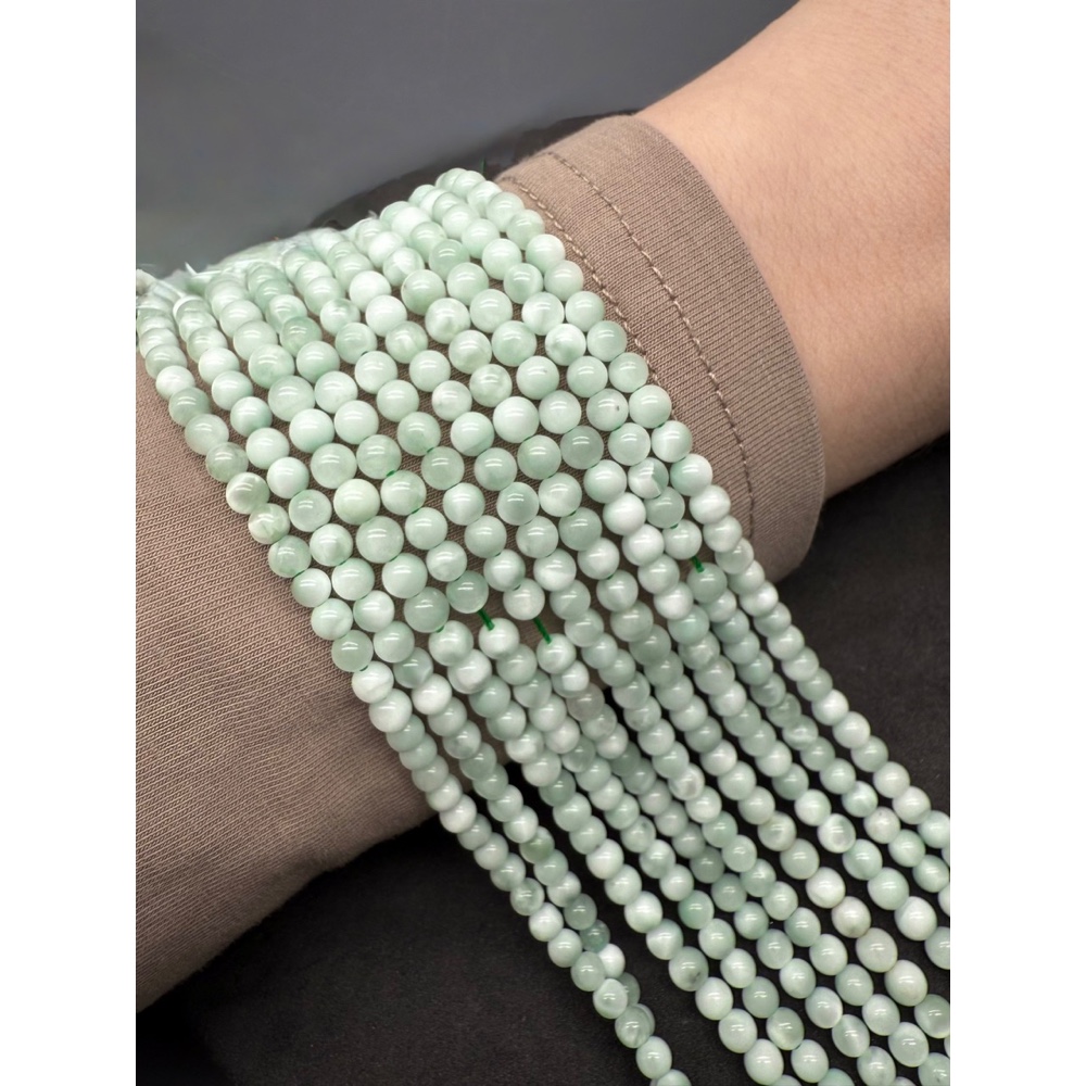 Каменные бусины, "Ангелит", зелёный, (волластонитовое стекло), искусственный материал,шарик гладкий, 4 мм, длина нити 38 см