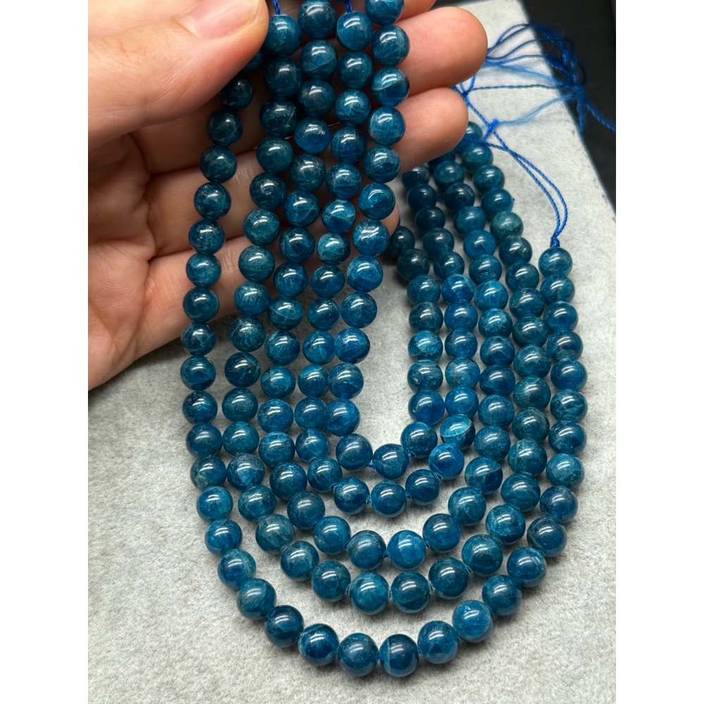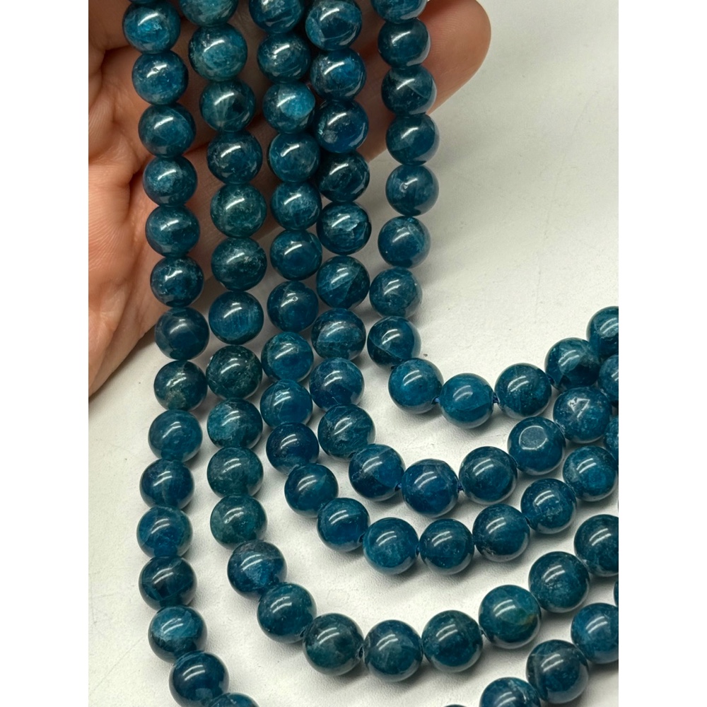 Теги: Каменные бусины, Апатит, синий, (Мадагаскар), люкс, шарик, гладкий, 8 мм, длина нити 40 см, 21432, Бусины гладкие