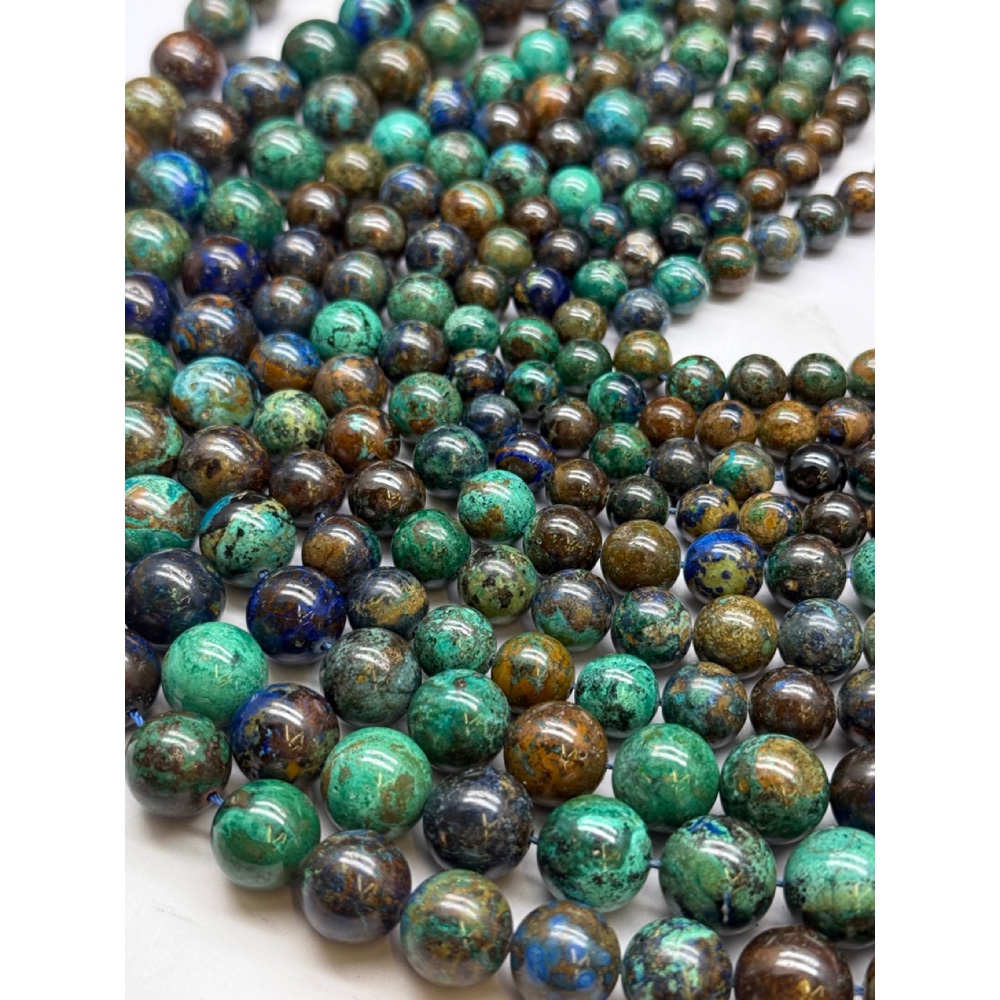 • Каменные бусины, Азурит (Азурмалахит), люкс, шарик гладкий, 10 мм, нить 18 см