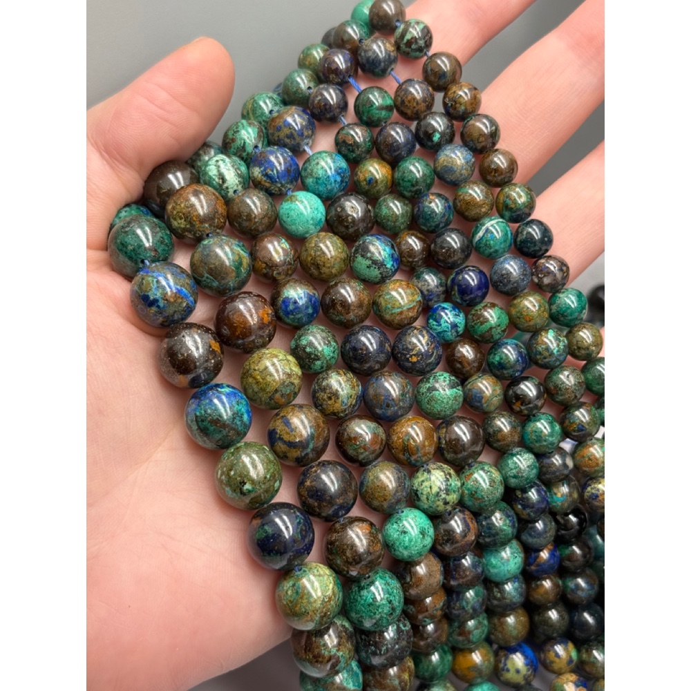 Теги: Каменные бусины, Азурит (Азурмалахит), люкс, шарик гладкий, 10 мм, нить 18 см, 15810, Бусины гладкие