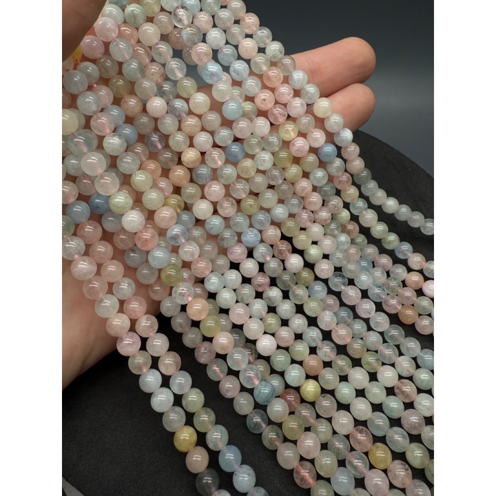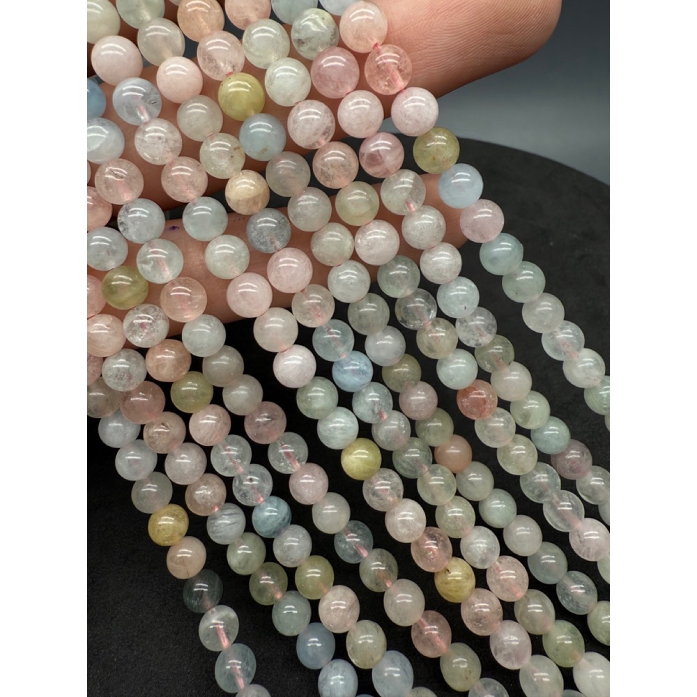 Каменные бусины, Берилловый Микс, люкс, шарик гладкий, 6 мм, длина нити 38 см