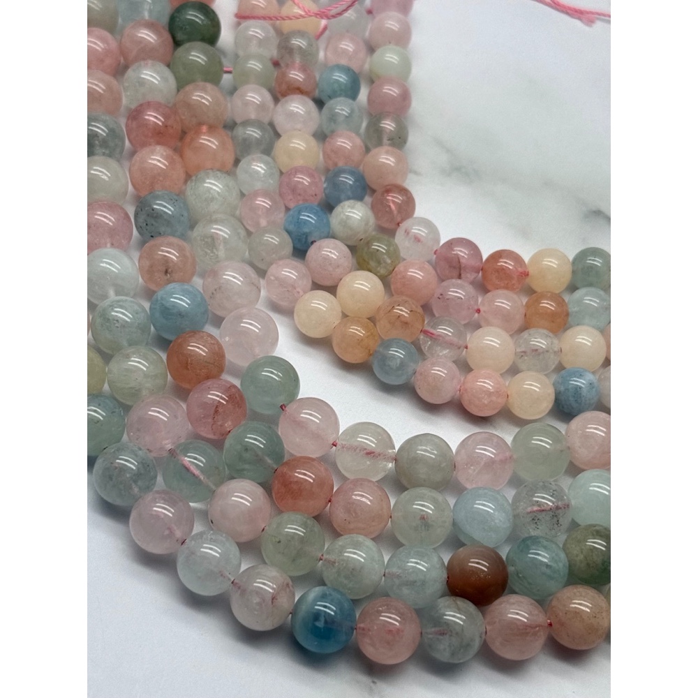 Каменные бусины, Берилловый Микс, люкс, шарик гладкий, 8 мм, длина нити 38 см