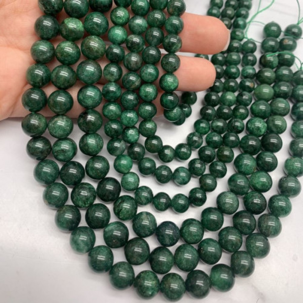 Каменные бусины, Фуксит, шарик гладкий, 6 мм, нить 38 см