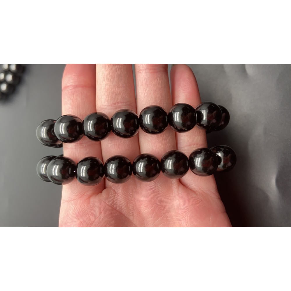 Каменные бусины, Гагат, (Грузия), шарик гладкий, 12 мм, 16 бусин