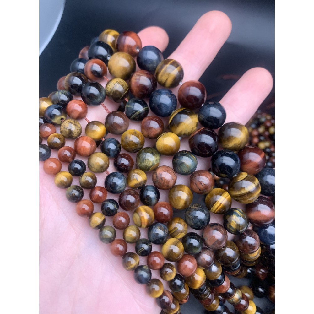 Каменные бусины, Глазковый микс (Тигровый глаз, бычий глаз, соколиный глаз), 8 мм, шарик гладкий, нить 38 см