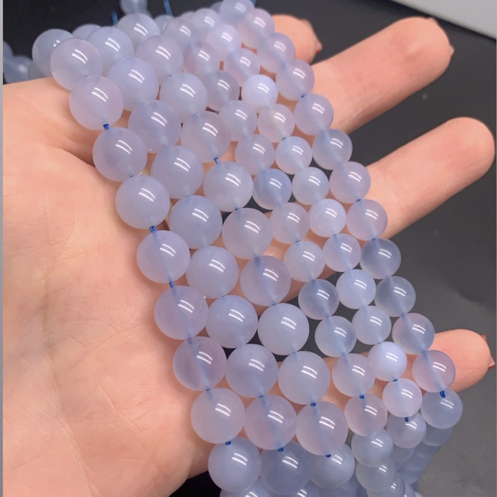 Каменные бусины, Халцедон, голубой, люкс, не тонированный, 10 мм, длина нити 19 см