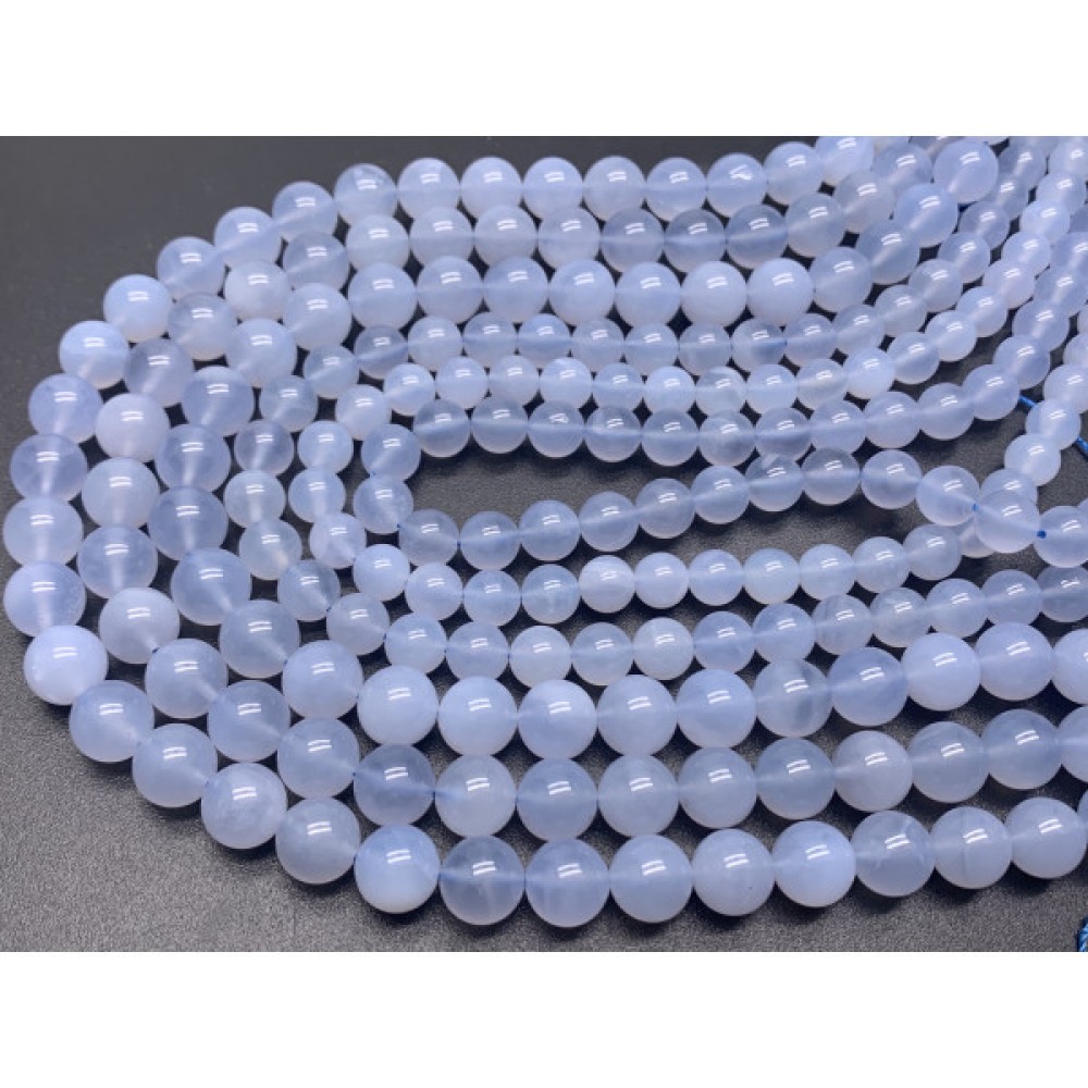 Каменные бусины, Халцедон, голубой, люкс, не тонированный, 8 мм, длина нити 19 см