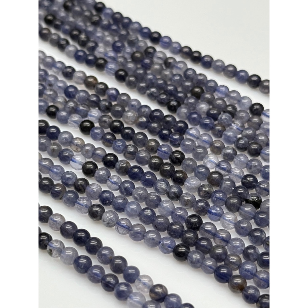 • Каменные бусины, Иолит (Водяной Сапфир), шарик гладкий, 4 мм, длина нити 38 см
