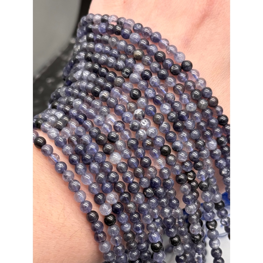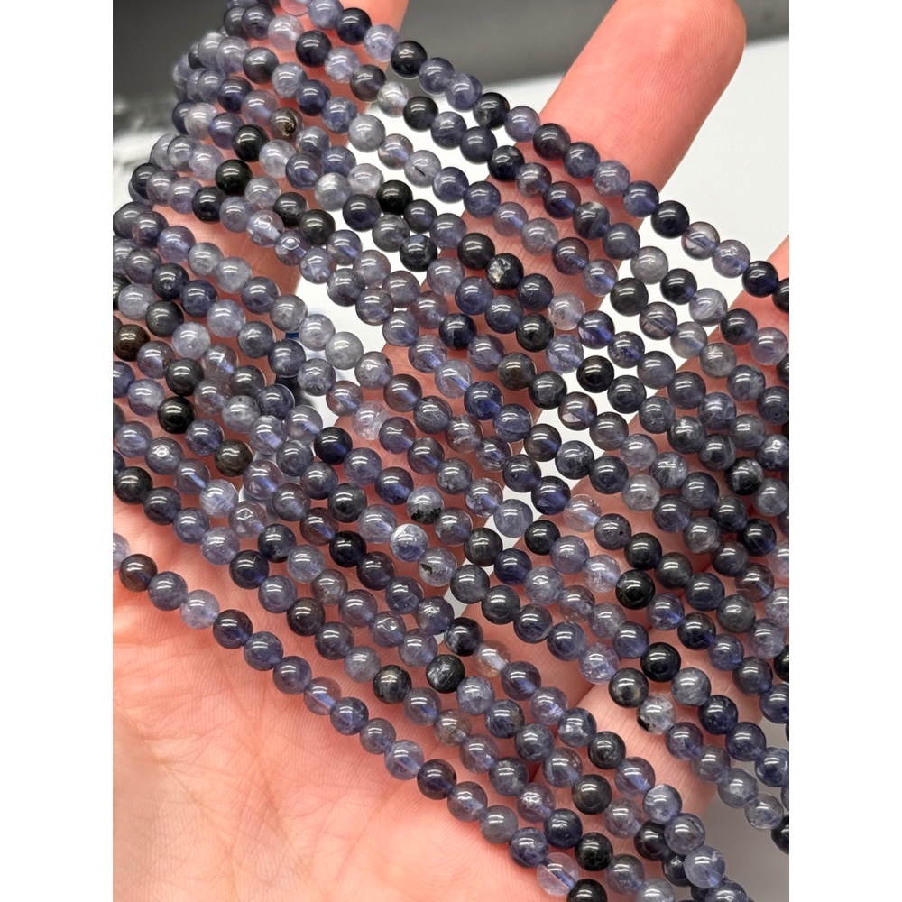 Теги: Каменные бусины, Иолит (Водяной Сапфир), шарик гладкий, 4 мм, длина нити 38 см, 21689, Бусины гладкие
