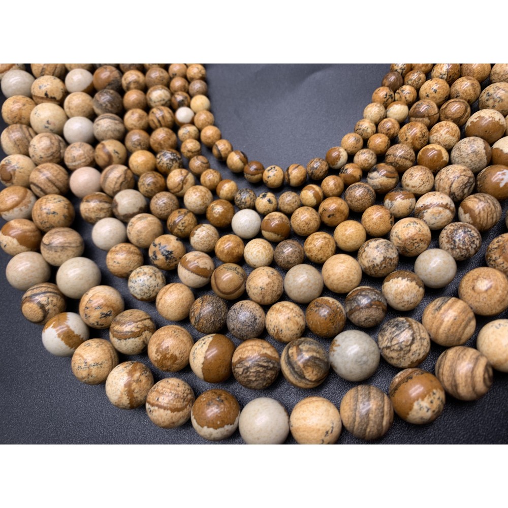 Каменные бусины, Яшма, песочная, шарик гладкий, 6-6,5 мм, длина нити 38 см