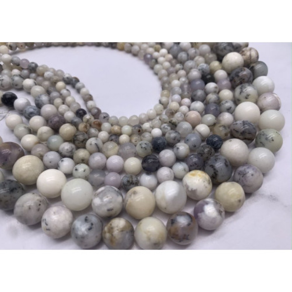 Каменные бусины, Кахолонг натуральный (жемчужный опал), шарик гладкий, 8,5 мм, длина нити 38 см