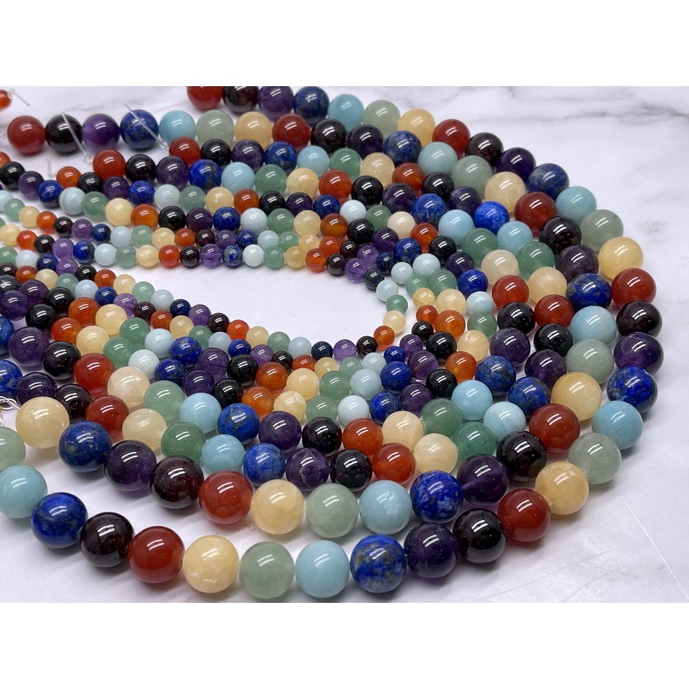 Каменные бусины, Микс камней, "7 ЧАКР", шарик гладкий, 10 мм, длина нити 38 см