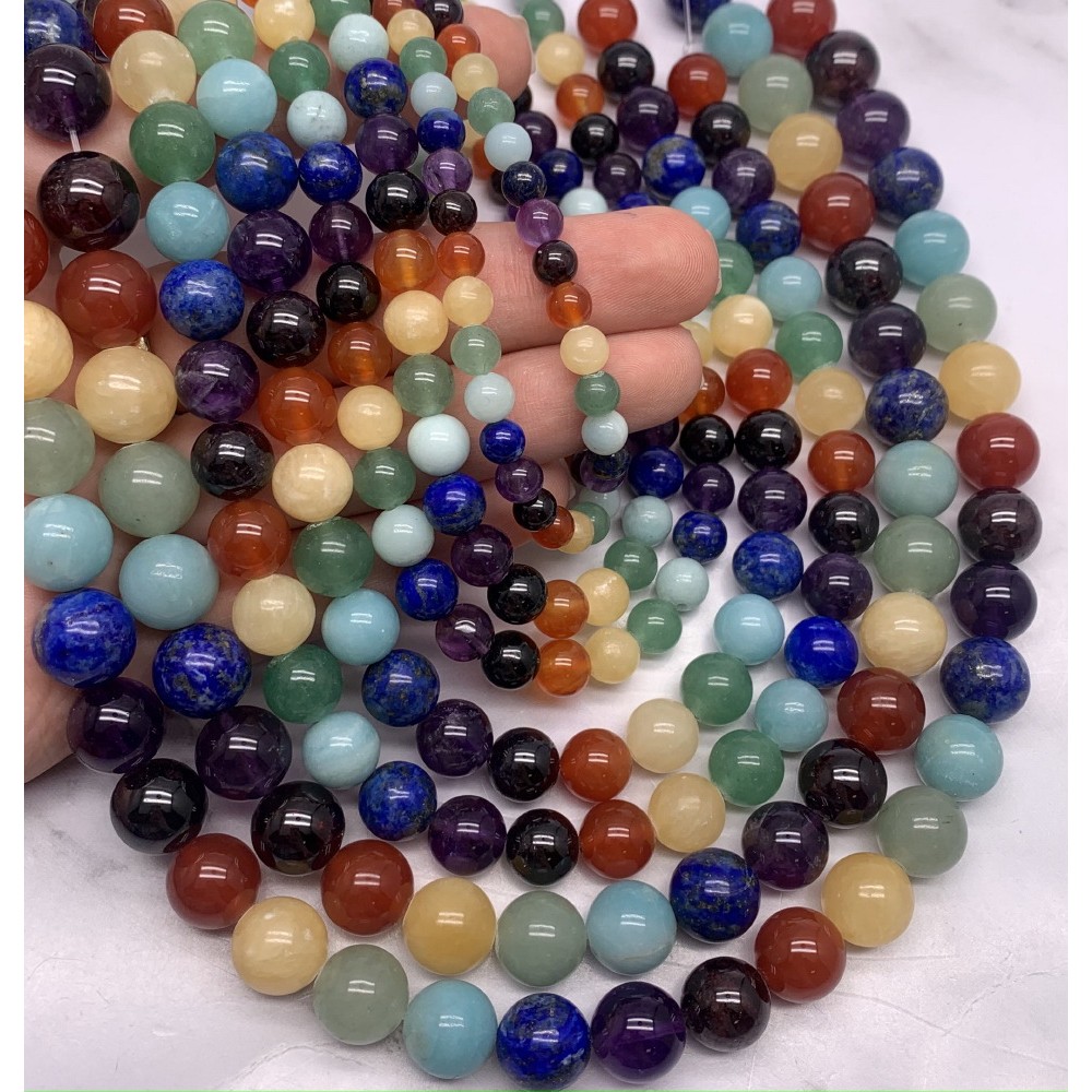 Каменные бусины, Микс камней, "7 ЧАКР", шарик гладкий, 6 мм, длина нити 38 см