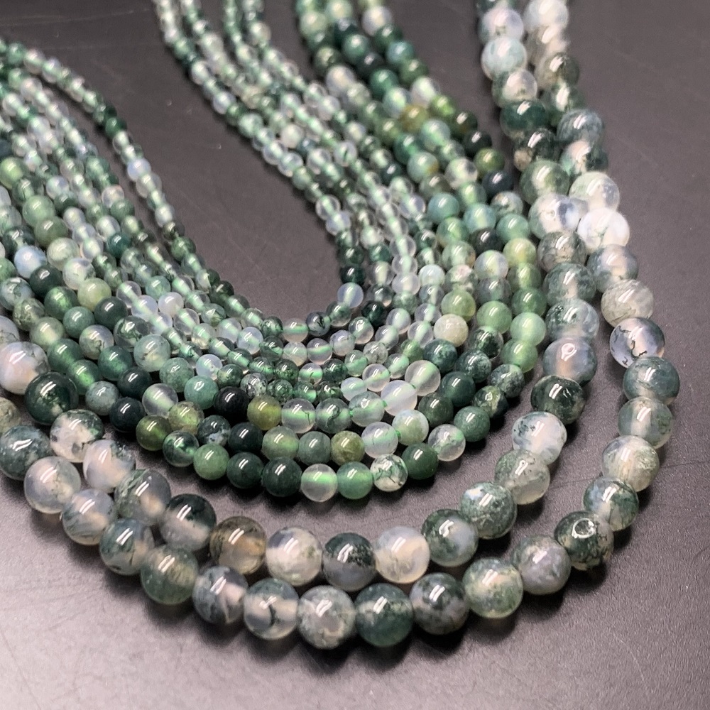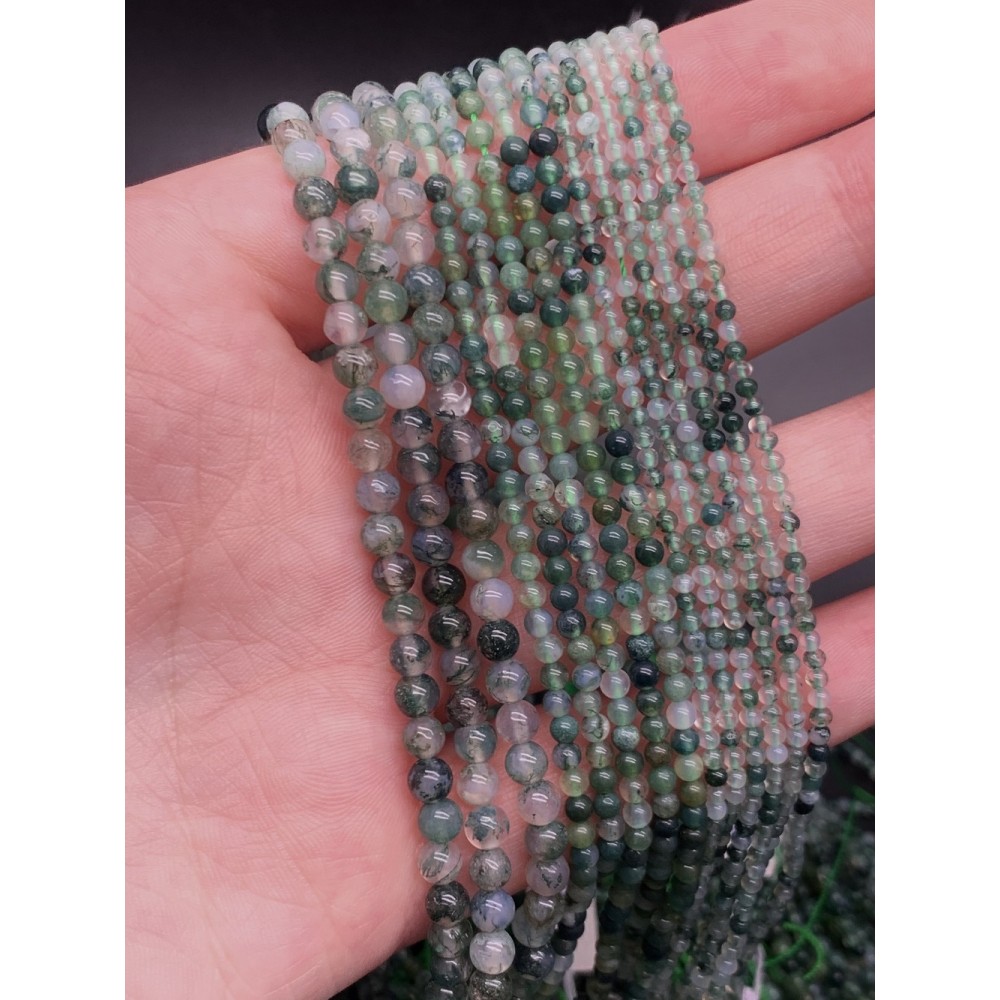 • Каменные бусины, Моховой Агат, шарик гладкий, 3 мм, длина нити 38 см