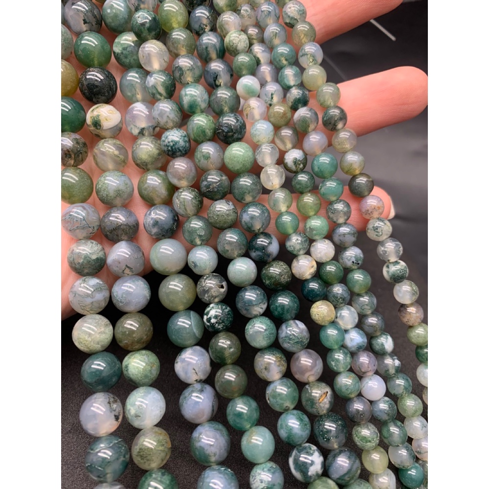 • Каменные бусины, Моховой Агат, шарик гладкий, 8 мм, длина нити 38 см