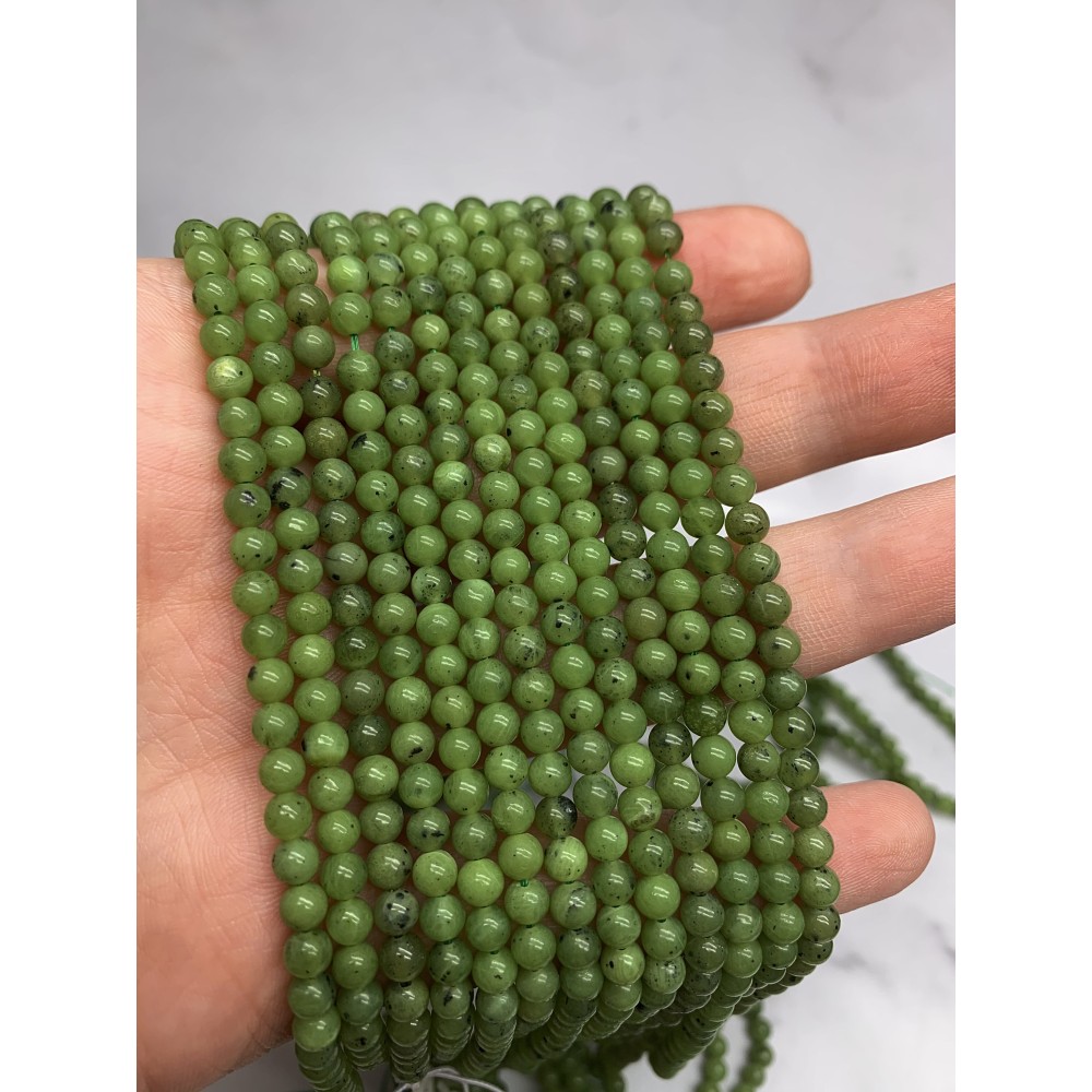 Теги: Каменные бусины, Нефрит, канадский, ЛЮКС, 4 мм, шарик гладкий, длина нити 38 см, 16659, Бусины гладкие