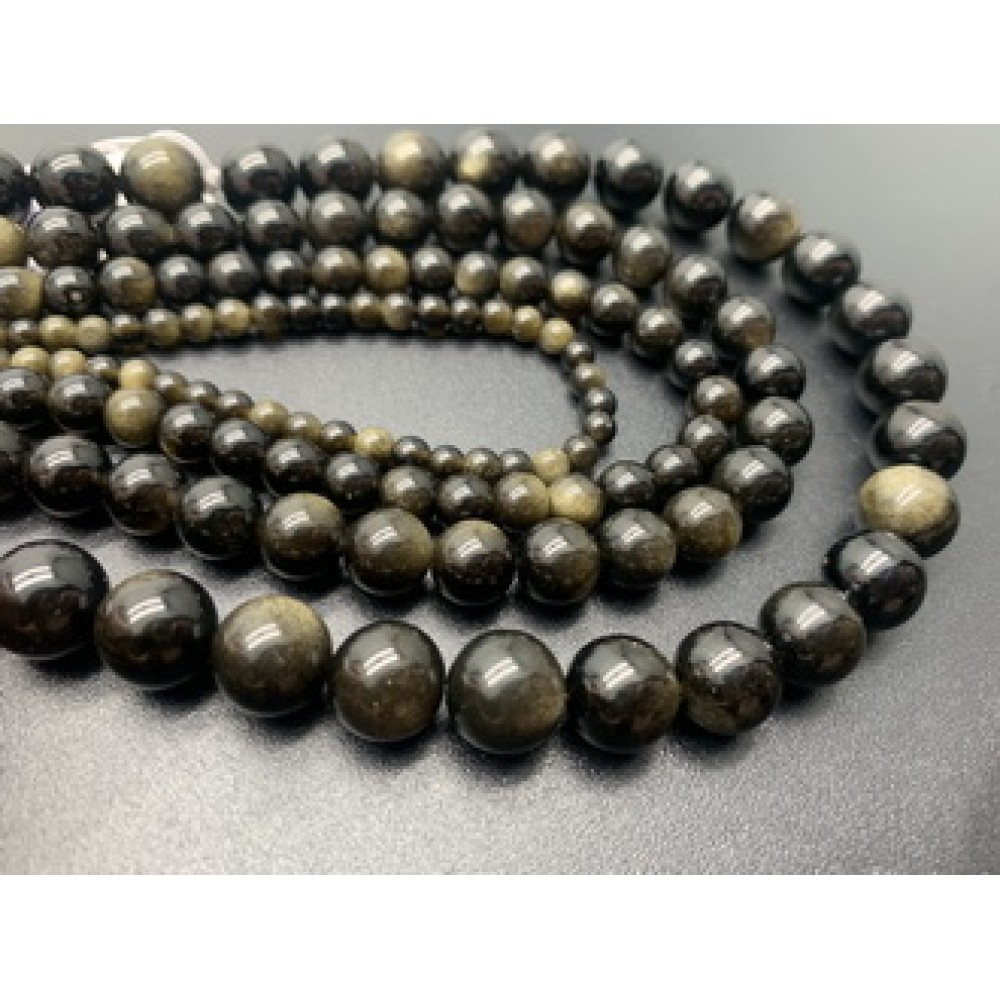 • Каменные бусины, Обсидиан золотой, шарик гладкий, 6 мм, длина нити 38 см
