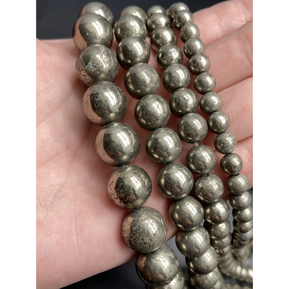 Каменные бусины, Пирит, шарик гладкий, 12 мм, длина нити 38-39 см