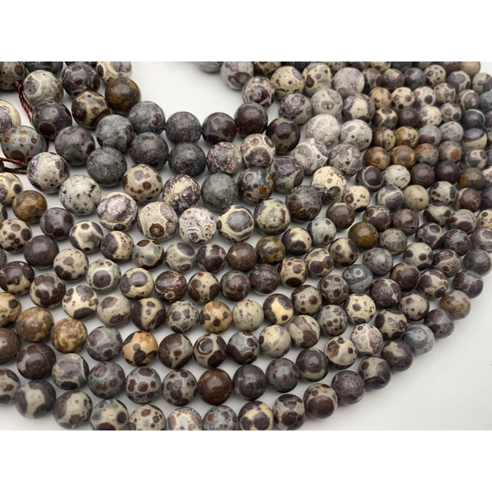 Каменные бусины, Риолит, леопардовая Яшма, шарик гладкий, 10 мм, длина нити 38 см