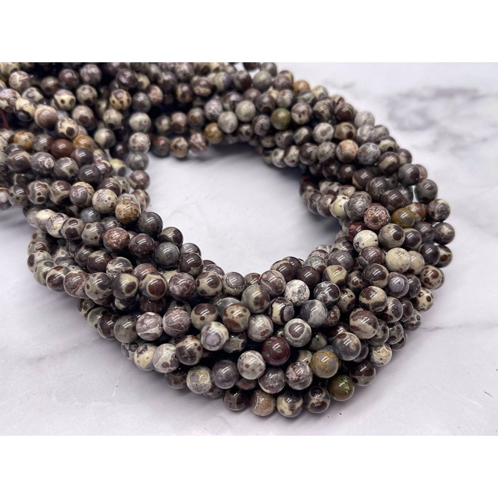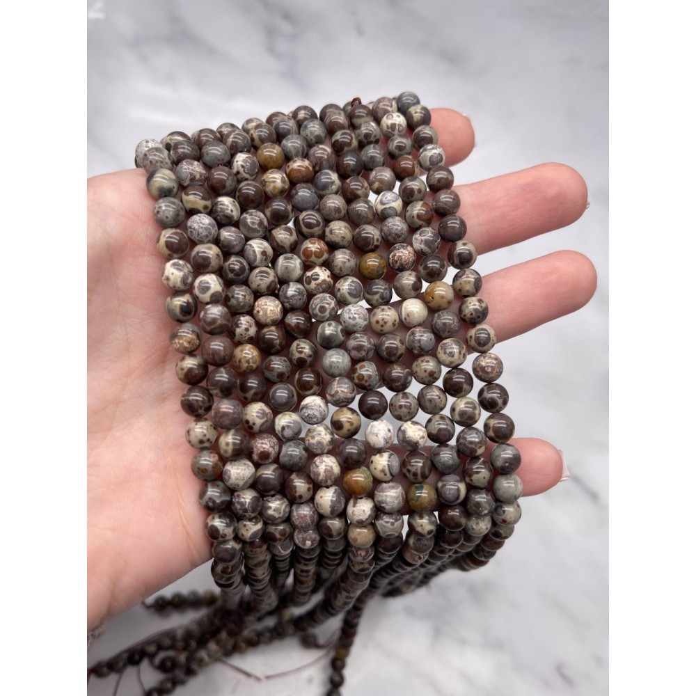 • Каменные бусины, Риолит, леопардовая Яшма, шарик гладкий, 6 мм, длина нити 38 см