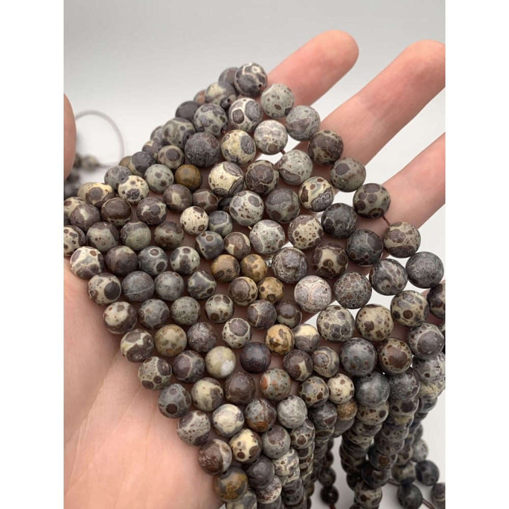 • Каменные бусины, Риолит, леопардовая Яшма, шарик гладкий, 8-8,5 мм, длина нити 38 см