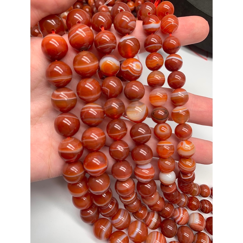 Каменные бусины, Сардоникс, шарик гладкий, 10 мм, длина нити 38 см