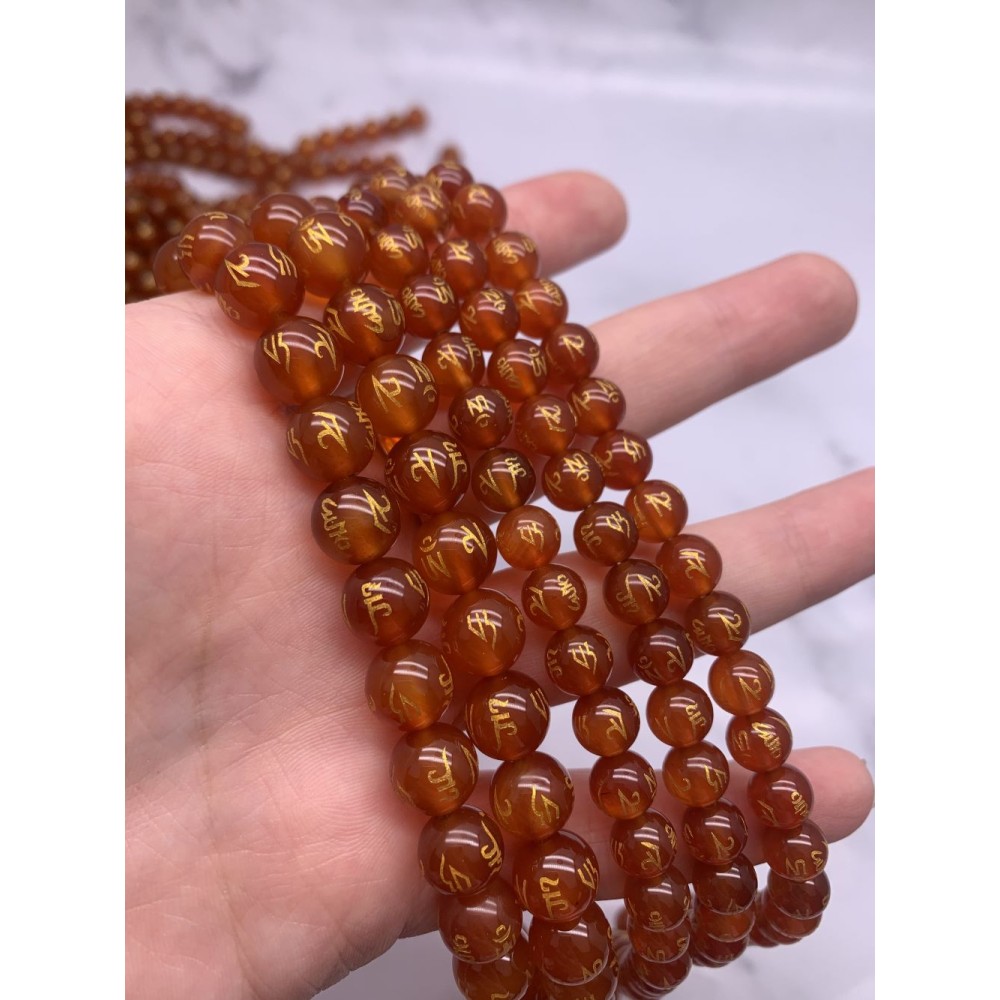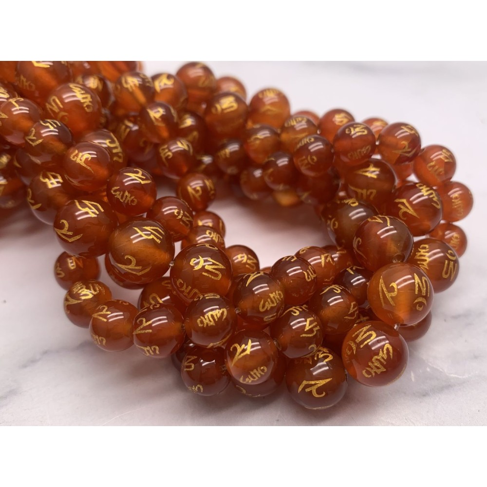 Каменные бусины, Сердолик (Карнеол), мантры (любовь, счастье, здоровье, успех, богатство), 10 мм, нить 38 см