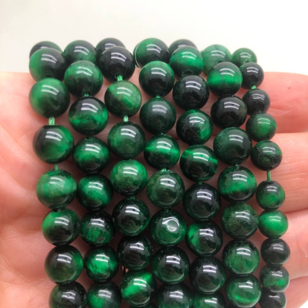Технические характеристики Каменные бусины, Тигровый глаз, тонированный, зелёный, шарик гладкий, 8 мм, длина нити 38 см