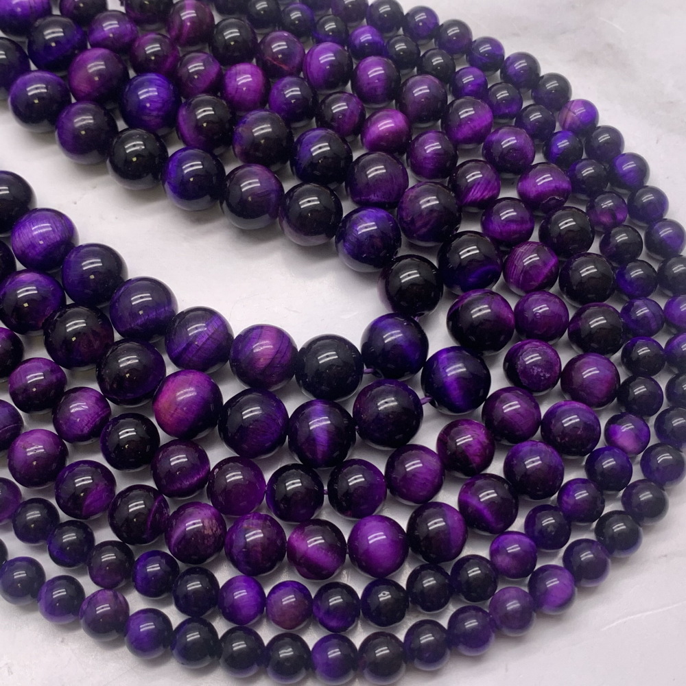 Каменные бусины, Тигровый глаз, тонированный, фиолетовый, шарик гладкий, 8 мм, длина нити 38 см