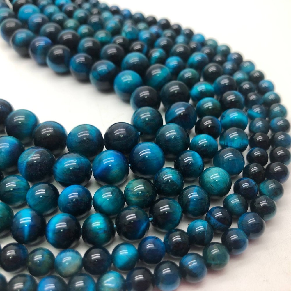 Каменные бусины, Тигровый глаз, тонированный, голубой, шарик гладкий, 6 мм, длина нити 38 см