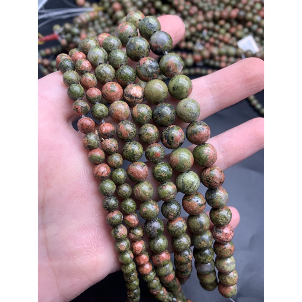 Каменные бусины, Унакит, шарик гладкий, 8-8,5 мм, длина нити 38 см