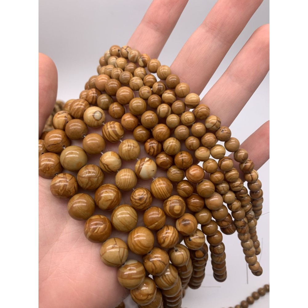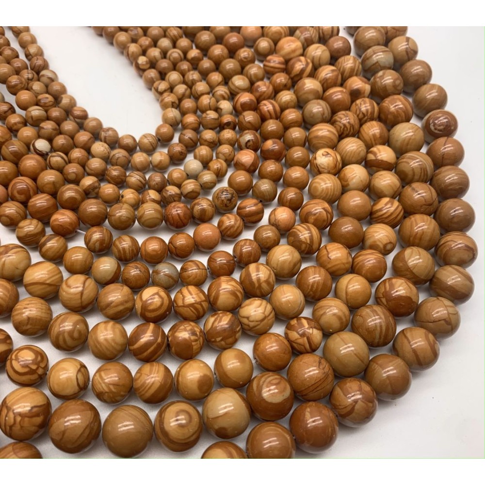 Каменные бусины, Яшма, "деревянная", шарик гладкий, 12 мм, длина нити 38 см