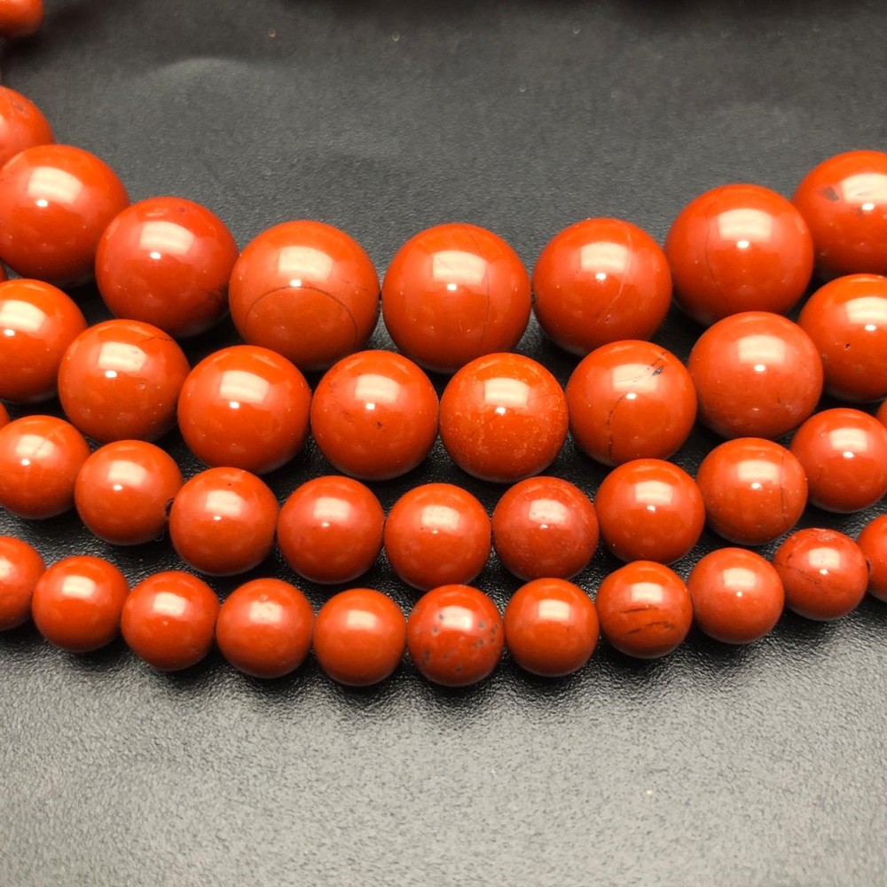 Каменные бусины, Яшма, красная, шарик гладкий 12 мм, длина нити 38 см