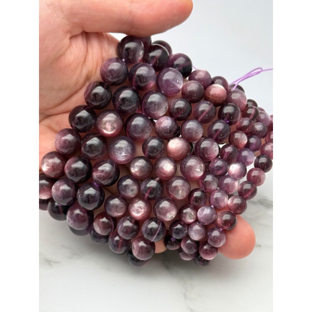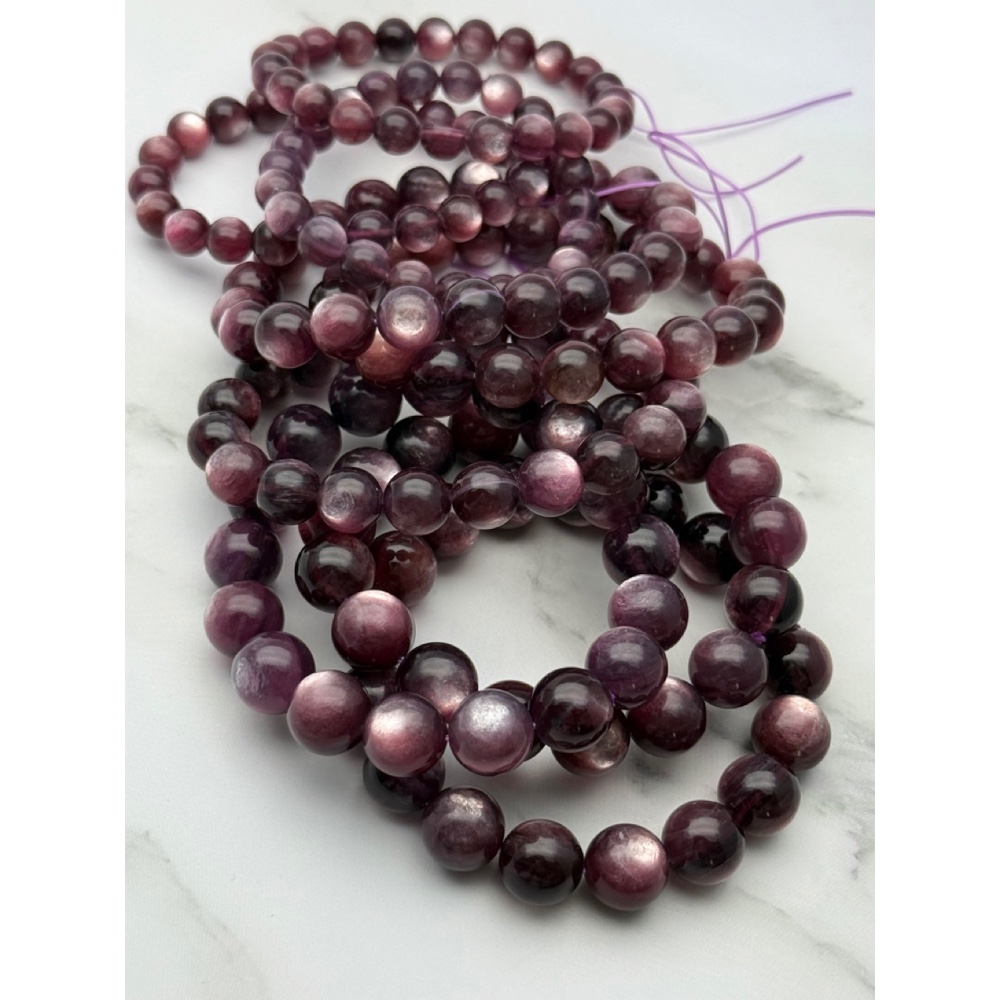 Браслет, лепидолит, экстра, шарик гладкий, 8 мм, длина нити 18 см, 22 бусины
