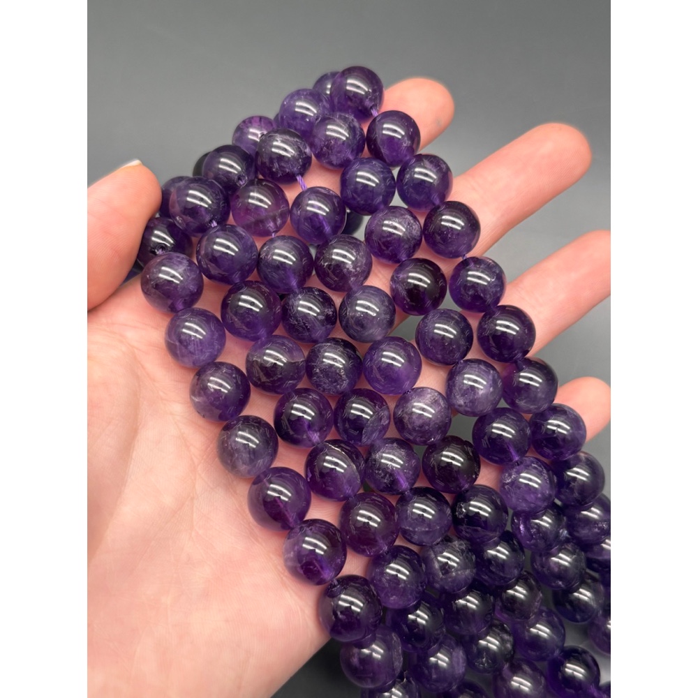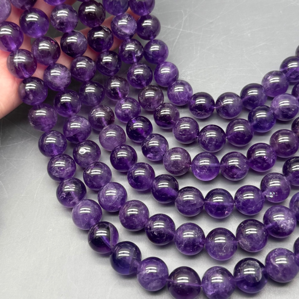 Каменные бусины, Аметист, шарик гладкий, 12-12,5 мм, длина нити 19 см