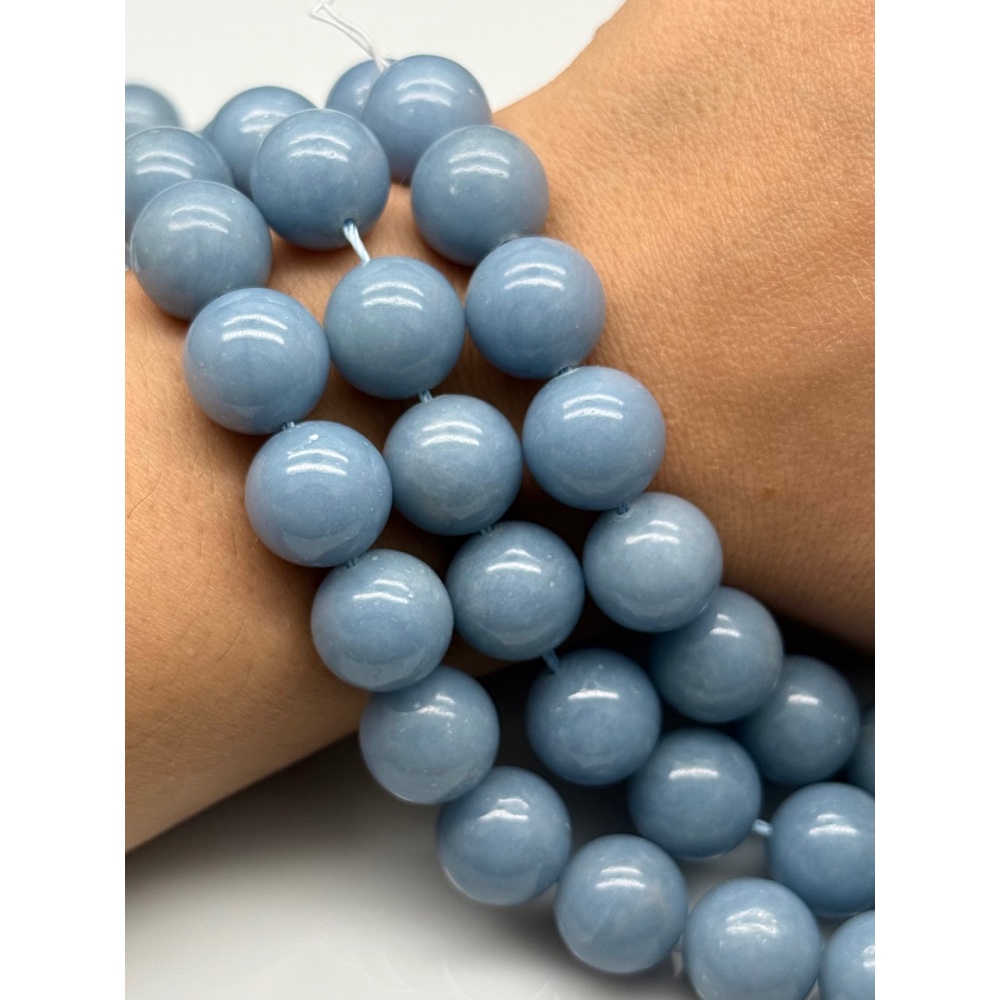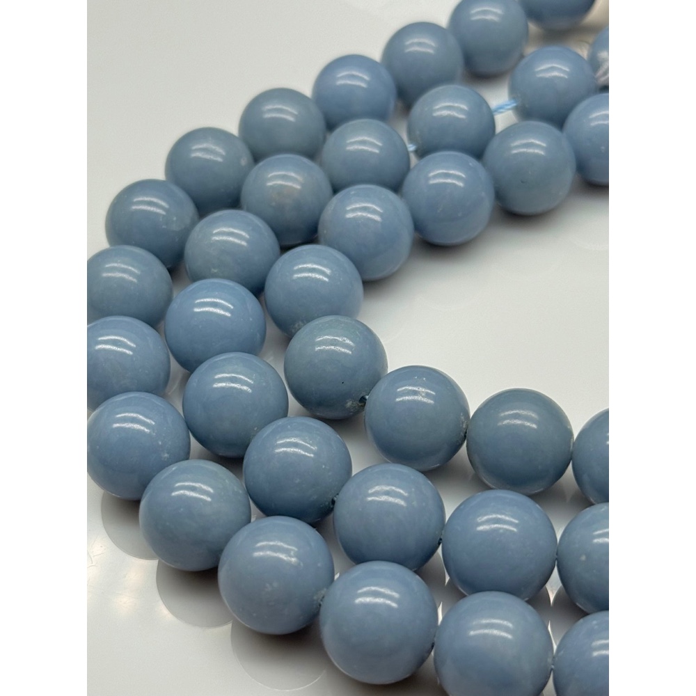 Каменные бусины, Ангелит, ангидрит природный, шарик гладкий, 14 мм, длина нити 19 см