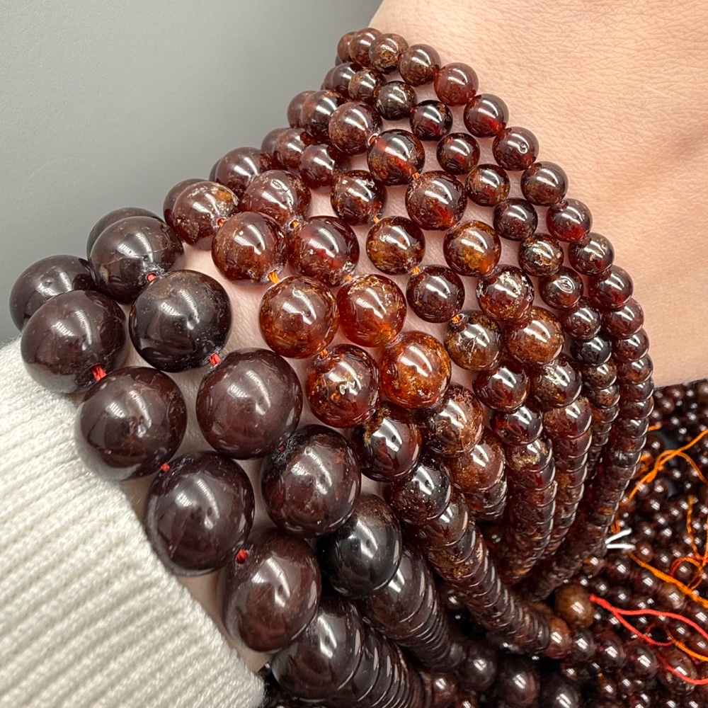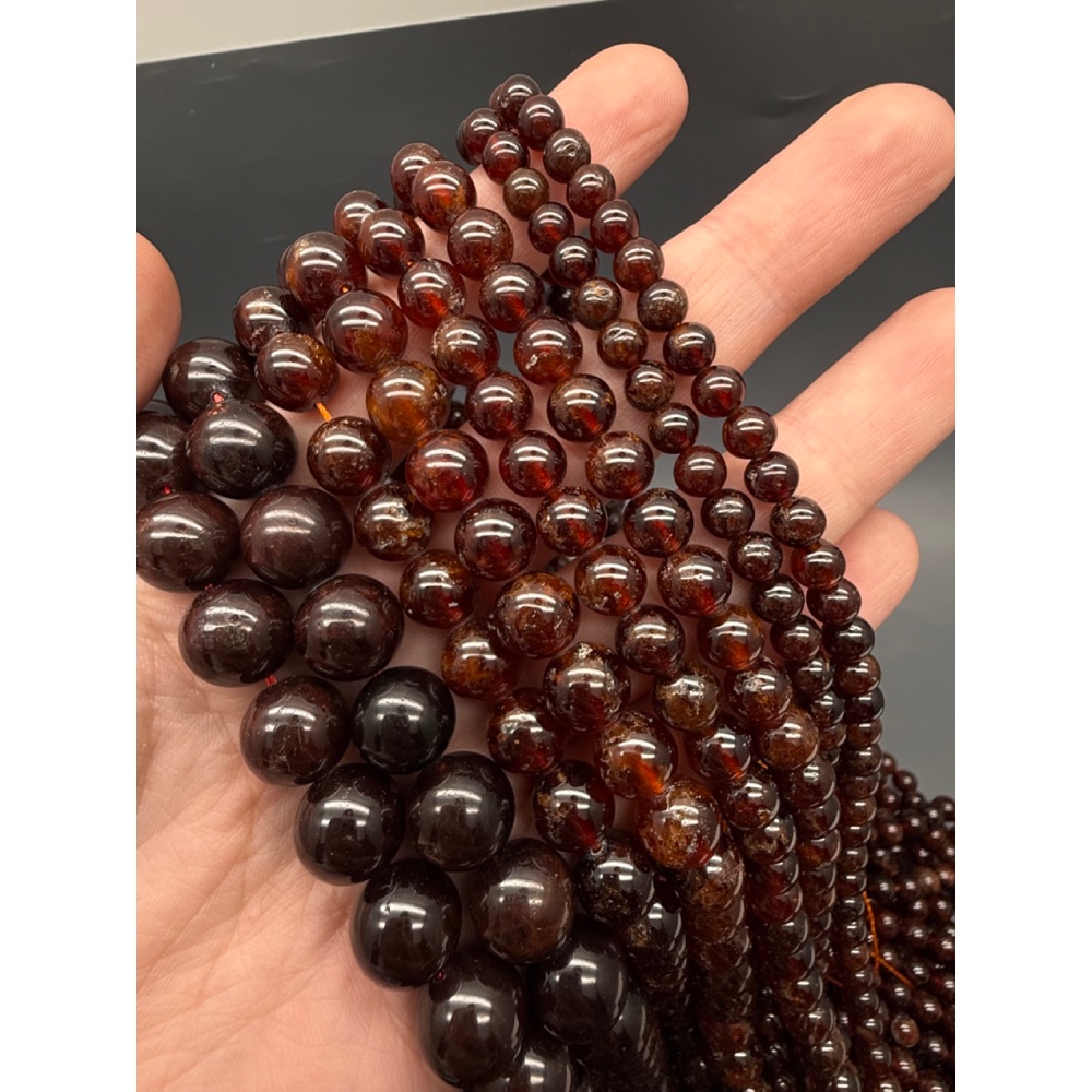 Теги: Каменные бусины, Гранат, Гессонит, Люкс, шарик гладкий, 7, 7-8 мм, длина нити 19 см, 17337, Бусины гладкие