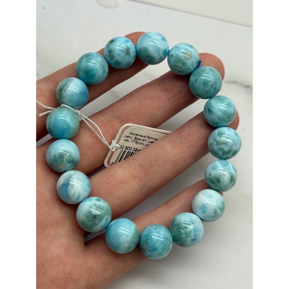 Теги: Каменные бусины, Ларимар, люкс, браслет, шарик гладкий, 13 мм, 17 бусин, длина нити 19 см, 13010, Браслеты из натуральных камней
