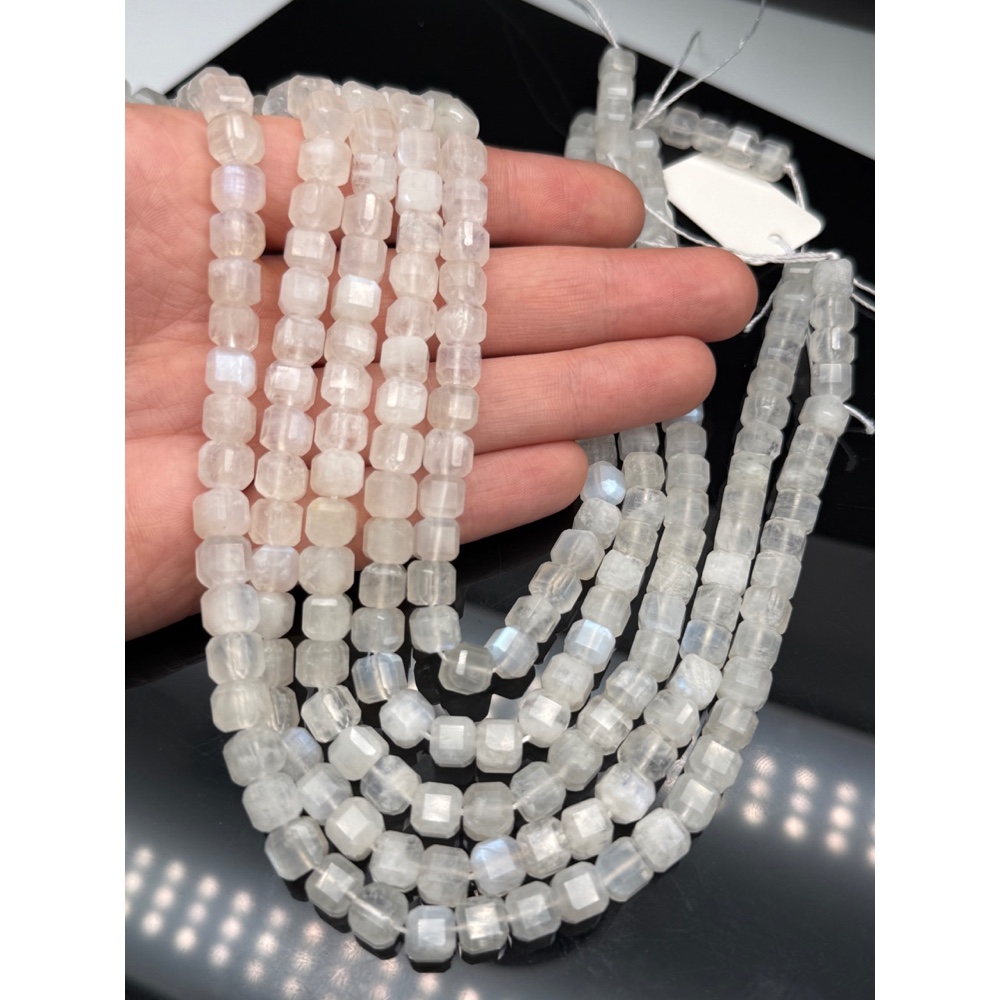 Теги: Каменные бусины, Лунный камень, Адуляр, люкс, зеркальная огранка, кубик 7х7 мм, длина нити 19 см, 21485, Основы для брелков
