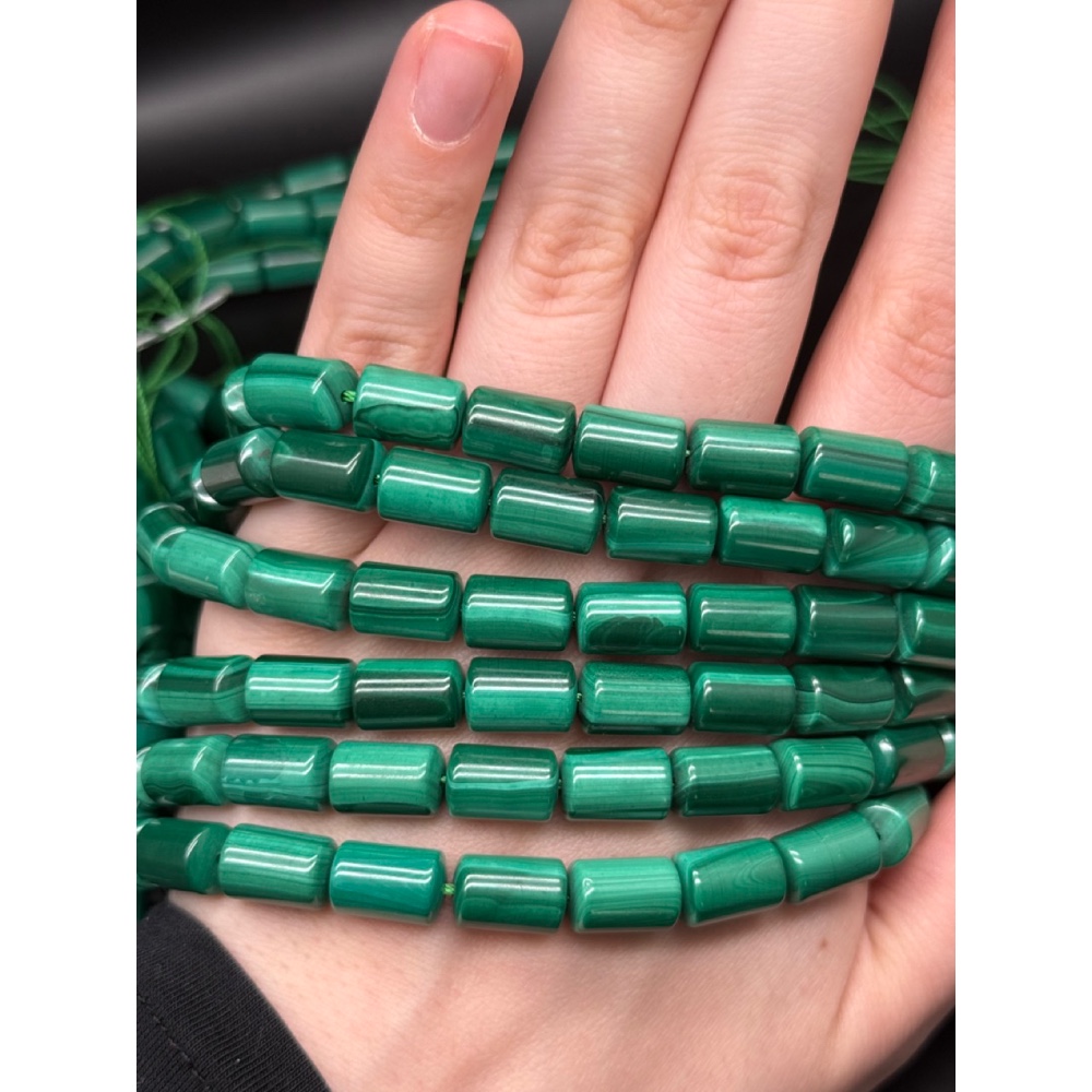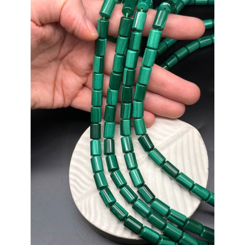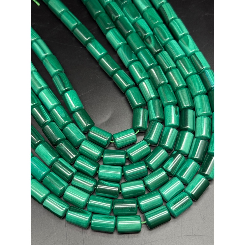 • Каменные бусины, Малахит (Конго), люкс, трубочки (столбики), 8х12 мм, 16 бусины, длина нити 19 см