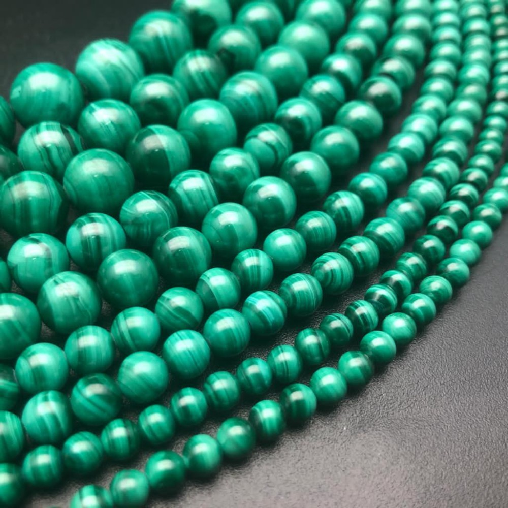 Каменные бусины, Малахит (Конго), люкс, шарик гладкий, 10 мм, длина нити 19 см