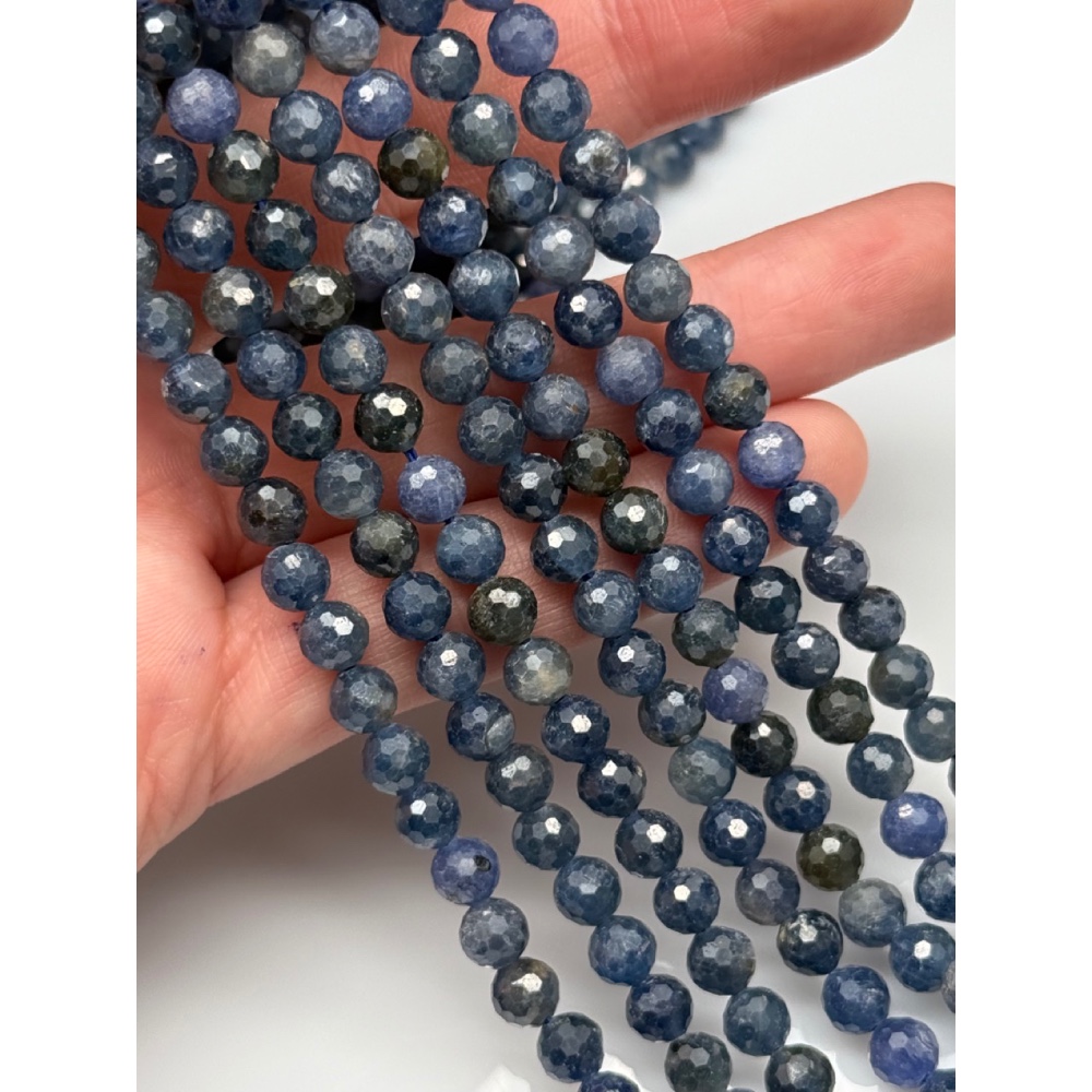 Каменные бусины, Сапфир, Корунд, (Шри-Ланка), Люкс, шарик огранка, 6 мм, длина нити 19 см 0 1600 ₽