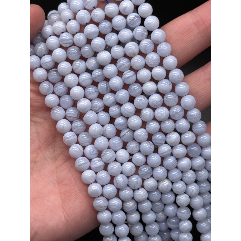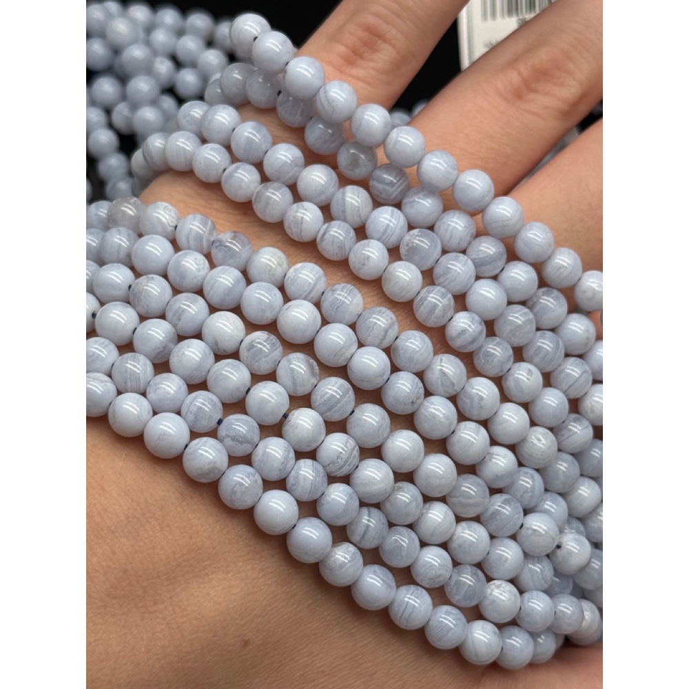 Каменные бусины, Сапфирин, Голубой Агат, люкс, шарик гладкий, 6 мм, длина нити 19 см