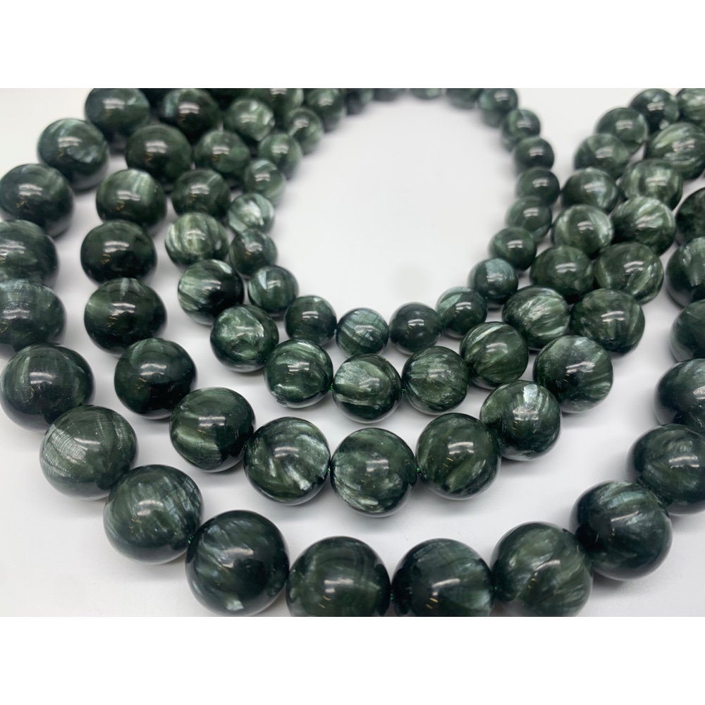 Каменные бусины, Серафинит, Клинохлор, люкс, шарик гладкий, размер 9 мм, длина нити 38 см