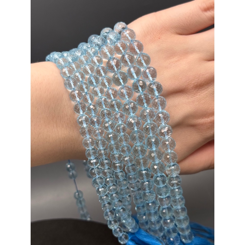 Каменные бусины, Топаз, голубой, экстра люкс, шарик, огранка, 6,8-7 мм, длина нити 25 см 0 11900 ₽
