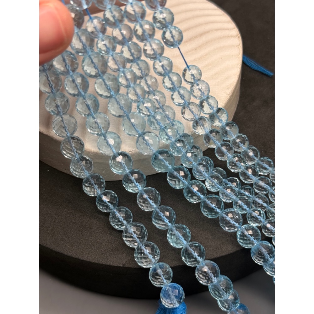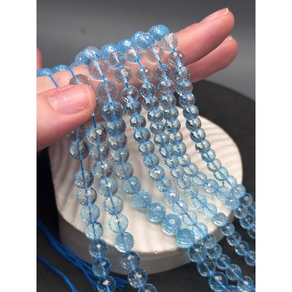 Теги: Каменные бусины, Топаз, голубой, экстра люкс, шарик, огранка, 6, 8-7 мм, длина нити 25 см, 20870, Бусины в огранке